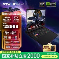 微星(MSI)泰坦18Pro 锐龙版 2025 18英寸游戏笔记本电脑(R9-9955HX3D RTX5080 64G 2TB 4K/MiniLED)国家补贴