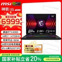微星神影16游戏本电脑搭载了高性能i7-14700HX处理器和强劲的RTX4060独立显卡,配备16GB内存与1TB大容量固态硬盘,轻松应对多任务处理与大型游戏运行,2.5K分辨率屏幕配合240Hz高刷新率带来流畅细腻的视觉体验。