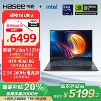 神舟(HASEE)【国家补贴20%】战神T8 酷睿Ultra 16英寸游戏本笔记本电脑(U5 125H 32G 1T RTX4060 240Hz 2.5K)