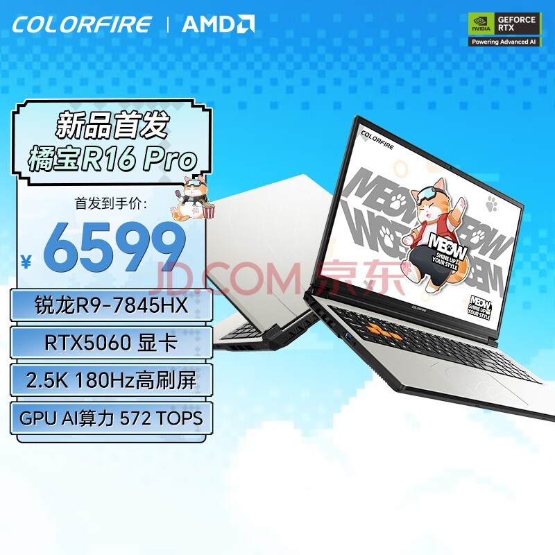 七彩虹MEOW R16 Pro目前R9 7845HX+RTX 5060+16GB+1TB版本首发价6599元,国补后最终到手价5279.2元,R9 7845HX+RTX5060+16GB+1TB版本首发价7499元,国补后最终到手价5999.2元,可谓是加量不加价,如果你想要选购一款外观新潮,性能强悍的游戏本,那么你现在就可立即预约坐等开售了。