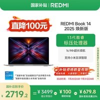 红米小米笔记本电脑红米REDMI Book 14 2025焕新版轻薄本,搭载高性能13代酷睿处理器,16GB内存与512GB固态硬盘组合,性能强劲,运行流畅,适合办公、学习和娱乐多场景使用,轻薄机身设计,便携美观,屏幕显示清晰细腻,带来更舒适的视觉体验。