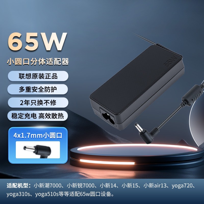 联想原装笔记本电脑TypeC充电器适配小新Air、Yoga、ThinkPad等多款机型,支持65W大功率快充,提供100W电源适配选项,兼容圆口和方口设计,充电更高效稳定。产品采用优质材质,配备分体式线缆,方便携带与收纳,同时具备12项安全防护功能,全面保护设备充电安全。