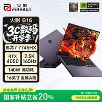火影B16游戏本搭载锐龙7-7745HX处理器与满血RTX4050显卡,配备16GB内存和512GB高速固态硬盘,性能强劲稳定,轻松应对主流游戏和多任务处理需求。其核心亮点在于一块16英寸2.5K分辨率高刷屏,支持高动态刷新率,画面流畅细腻,色彩还原精准,带来沉浸式视觉体验。整机散热高效,设计硬朗,兼顾性能释放与便携性,是游戏玩家和创作者的理想之选。