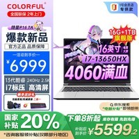 七彩虹(Colorful)国家补贴隐星P16 TA 16英寸大学生电竞游戏笔记本电脑(i7-13650HX 16G 1T RTX4060 240Hz 2.5K)白