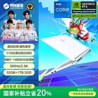 机械革命极光X潮玩版酷睿i7HX游戏本笔记本电脑,型号为i7 - 14650HX,配备32G内存和1T大容量存储,显卡是RTX5060,屏幕刷新率达300Hz,外观为时尚的白色。