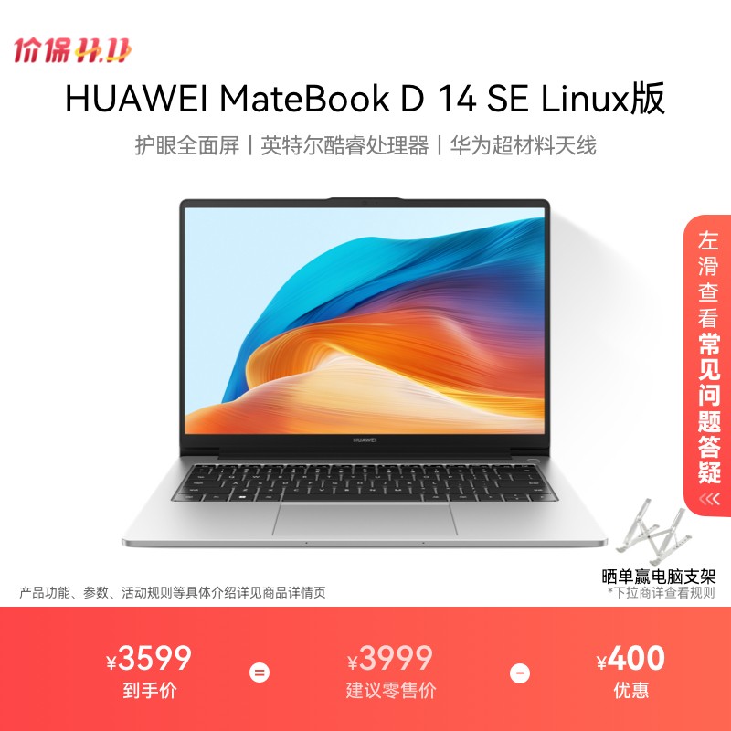 目前天猫商城正在进行百亿补贴活动,原价3599元的华为MateBook D 14 SE限时补贴价3599元,叠加国家补贴享受9.6折优惠再减143.96元,最终到手价仅需3455.04元,性价比出众,机会难得,喜欢的朋友千万别错过。