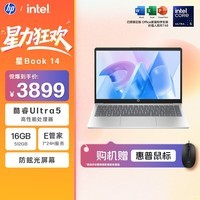 惠普星Book 14是一款轻薄笔记本电脑,搭载酷睿Ultra5处理器,拥有16G运行内存和512G存储空间,还配备724HE管家服务。