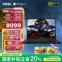 微星(MSI)神影16 锐龙版 2025 国家补贴20% 16英寸游戏笔记本电脑(R9-7945HX RTX5060 16G 1TB 2.5K240Hz屏)