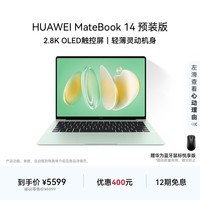 华为HUAWEI MateBook 14轻薄笔记本电脑原野绿配色时尚优雅,搭载酷睿Ultra5处理器,性能强劲响应迅速,配备16GB内存和1TB高速固态硬盘,无论是多任务处理还是大型软件运行都游刃有余。其2.8K OLED触控屏幕带来细腻画质与真实色彩表现,支持高精度触控操作,提升使用体验。整机轻薄便携,续航持久,预装正版Windows系统,开箱即用。