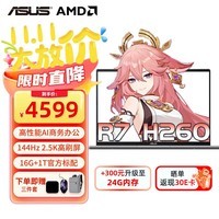 华硕(ASUS)笔记本电脑 无畏16 高性能AI商务办公轻薄本16英寸2.5k电竞高刷大屏设计师学习游戏家用电脑 【新品】锐龙7 H260 16G 1T 官方标配 144Hz|2.5K高刷屏