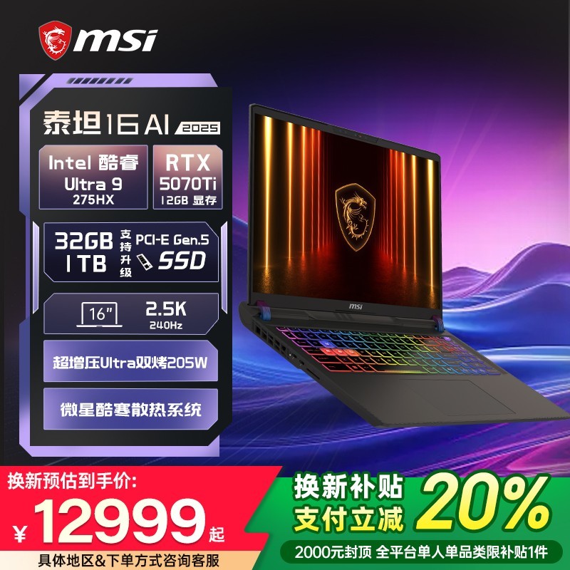 本文属于原创文章,如若转载,请注明来源:微星泰坦16 AI U9笔记本直降4000元https://nb.zol.com.cn/1093/10932537.html