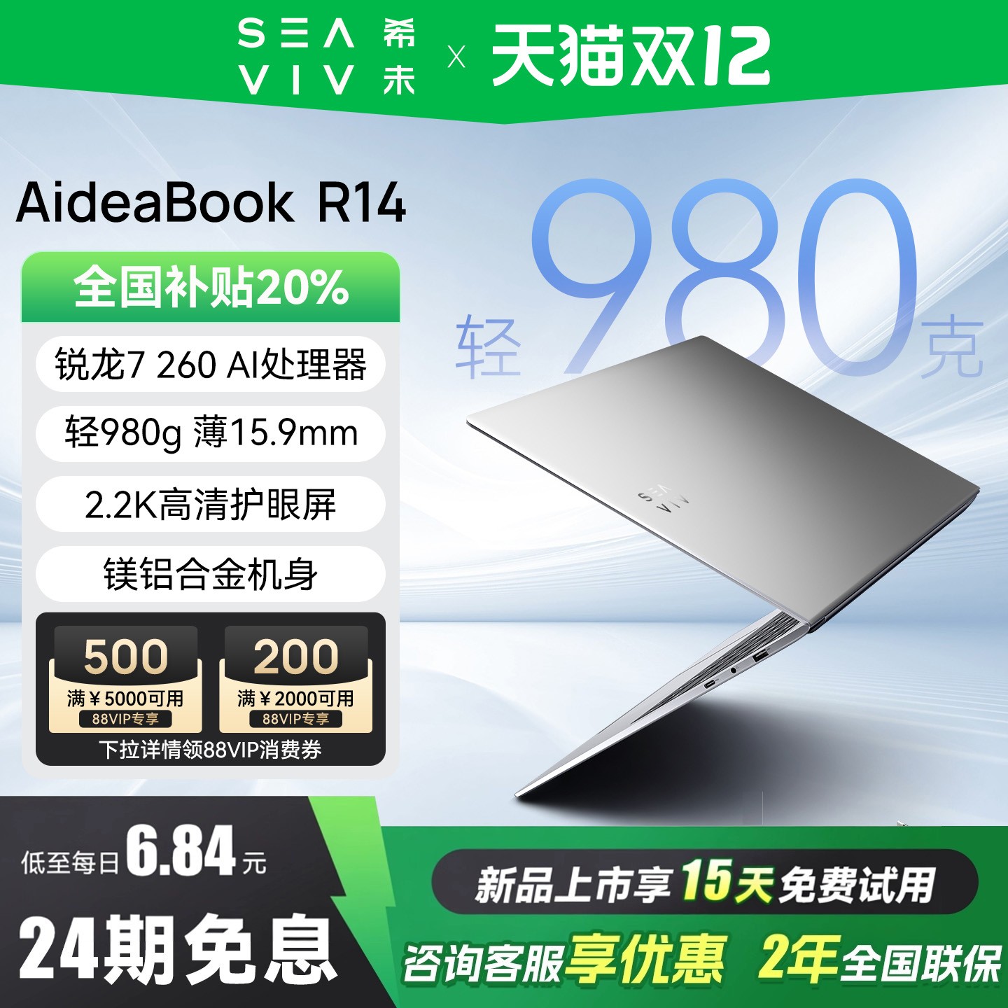 希未AideaBook R14 AI笔记本电脑2025年新款震撼上市轻薄便携设计整机仅重980g轻松放入通勤包随拿随走搭载全新AI智能芯片运算更快响应更灵敏无论是办公创作还是日常使用都能带来流畅体验14英寸高清护眼屏色彩还原精准视觉体验出色续航持久满足全天候使用需求金属机身质感出众散热性能优越官方旗舰店正品保障现天猫精选活动售价5399元参与立减800元优惠下单即享超值到手价仅需4599元数量有限先到先得立即抢购开启高效智能新体验