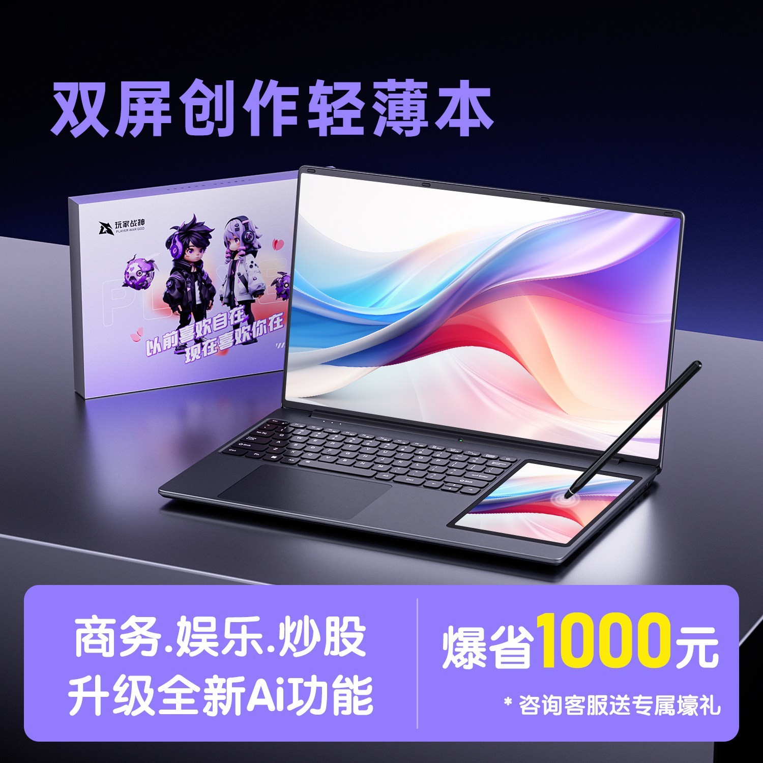 AIERXUAN双屏笔记本电脑2025新款震撼来袭专为商务办公与学生群体量身打造15.6寸高清大屏带来更广阔的视野体验主屏流畅操作副屏高效协同多任务处理轻松应对无论是办公会议学习创作都能得心应手机身采用超轻薄设计重量轻体积小便于随身携带真正实现超便携使用需求性能稳定散热出色续航持久满足全天候使用需求目前在天猫精选平台限时优惠活动售价2221元现参与立减23元优惠下单即享实付价仅需2198元性价比爆棚机会难得数量有限赶快抢购享受双屏科技带来的高效新体验