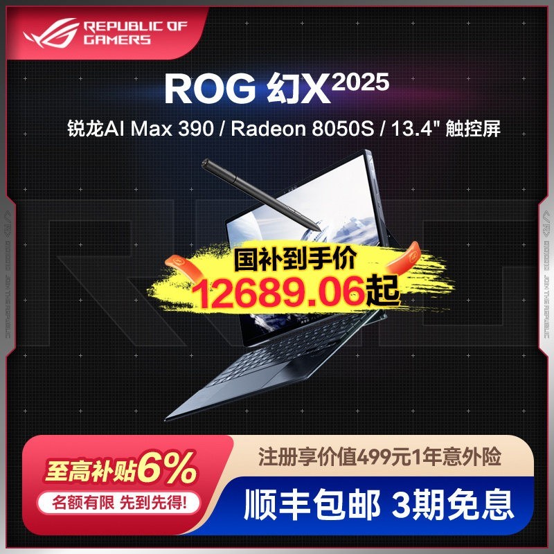 想拥有一台高性能笔记本电脑?ROG幻X 2025 锐龙AI MAX值得考虑。它是13.4英寸触控二合一的游戏笔记本电脑,既适合打游戏,也是设计师的好帮手,同时满足商务办公需求。在天猫精选,这款电脑目前活动售价14499元,还能领取满9000减30元优惠券,参与满10000元减1000元活动,并且全国多地有政府补贴,补贴6%起减808.14元。