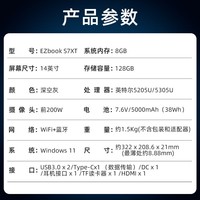 中柏14英寸轻薄笔记本电脑EZbook S7XT,专为商务办公、学习及影音娱乐设计,搭载8GB运行内存和128GB高速固态硬盘,开机迅捷响应流畅,轻松应对多任务处理。配备14英寸护眼屏幕,有效过滤蓝光,长时间使用更舒适,特别适合办公、网课与追剧场景。机身轻巧便携,续航持久,满足全天候移动使用需求。