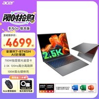 宏碁非凡Go Pro锐龙版【补贴立省至高15%】笔记本电脑Ai轻薄游戏 八核可选独显级高性能光追显卡设计本 R7-8745H丨32G丨2.5K高刷屏丨16英寸 【官方标配】1T PCI-e4.0