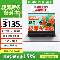 给大家介绍一款性价比超高的笔记本电脑——荣耀 X14 2026款。它配备14英寸屏幕,处理器为R7 - 7735HS,内存达16G,存储有512G,还搭载RDNA 3。无论是日常办公处理文档,还是闲暇时玩玩游戏、看看视频,它都能轻松应对。