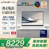华硕灵耀14 Air酷睿Ultra二代版14英寸轻薄本,搭载全新英特尔酷睿Ultra7 258V处理器(3nm工艺、4.8GHz睿频、4性能核+4能效核)、第二代Xe核显与47TOPs NPU算力,总算力达115TOPs;配备32GB LPDDR5x 8533MT/s高频内存和1TB高速固态硬盘;1.1cm超薄CNC一体成型机身,重约1.15kg,A面采用防污抗指纹陶瓷铝材质;2880×1800分辨率Lumina OLED屏幕,120Hz高刷、0.2ms疾速响应、100%P3广色域(133%sRGB)、△E<1逐台校色、600尼特峰值亮度、Display HDR True Black 600认证、杜比视界与Windows HDR支持、10bit色深及TUV莱茵低蓝光无频闪认证;5.9英寸大触控板支持240Hz采样率与顺滑手势;四扬声器支持杜比全景声与harman kardon音效;72Wh大电池续航长达约22小时;搭载1080p+IR AI双摄与AI双向语音降噪,支持Windows Hello、目光校正、运动追踪及StoryCube一站式AI多媒体中心;现京东活动售价8729元,叠加满3999减500优惠券、国补1227.8元及Plus立减43.64元,下单1件实付仅需6957.56元,性价比拉满,轻薄旗舰实力之选。
