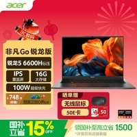 宏碁非凡Go锐龙版14英寸轻薄本全能办公笔记本电脑,搭载高性能标压锐龙5 6600H处理器、16GB大内存与512GB高速固态硬盘,轻薄便携设计兼顾强劲性能与高续航表现,满足日常办公、多任务处理及轻度创作需求;当前京东活动价3199元,叠加国补475元、PLUS专享立减及晒单返现50元e卡,实付低至2647.06元,性价比出众,入手正当时。