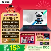 宏碁掠夺者战斧9NeoS 16英寸电竞游戏本电脑震撼登场!它配备酷睿U9 - 275HX处理器,性能强劲,能应对各类复杂游戏场景。16G运行内存与1T大容量存储,让游戏加载迅速且能存储海量游戏资源。RTX5070显卡助力,带来出色的图形处理能力,游戏画面更加细腻真实。2.5K OLED 240Hz屏幕,拥有高分辨率与高刷新率,为玩家呈现流畅、清晰、鲜艳的视觉盛宴。