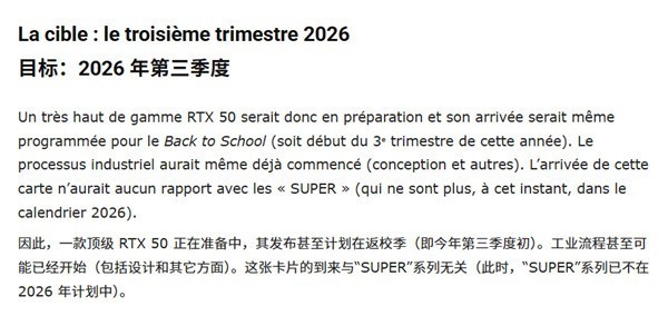 目前该卡已经处于板卡研发流程,而不是早期的规划阶段,这意味着它可能会在今年上市。从目前的消息来看,这张顶级游戏显卡很有可能在2026年第三季度发布,大概率在8、9月份。目前关于该卡的任何规格信息都没有爆料。