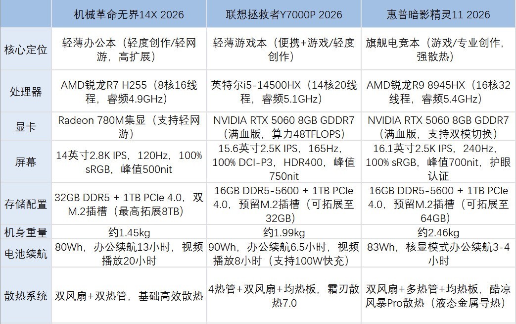 避坑第一步:一是明确使用场景,二是抓住核心参数。2026年选购无需纠结代数内卷,优先选新一代处理器(AMD锐龙AI系列、Intel酷睿Ultra系列),能效比和AI适配性更优;游戏党重点看满血显卡+散热,办公党侧重轻薄+续航,创作党关注屏幕色准+性能释放即可。