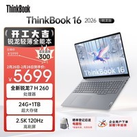 ThinkPad联想笔记本电脑ThinkBook 16 2026 AI版搭载R7 H系列处理器与260显卡,配备16英寸2.5K高清屏幕、24GB大内存和1TB高速固态硬盘,性能强劲响应迅捷,AI加速助力高效办公与创意设计;目前京东活动售价5699元,叠加国家补贴及Plus会员优惠后实付仅4819.94元,性价比出众,入手正当时。