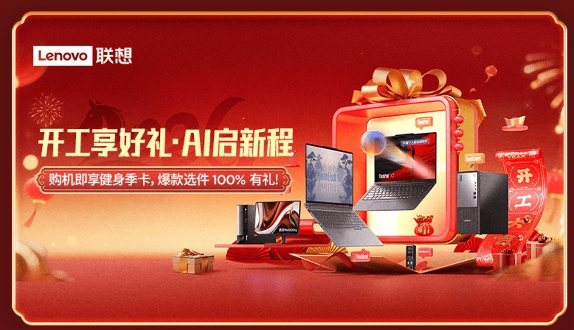 联想“开工享好礼·AI启新程”开工季从3月2日持续至3月22日。活动期间,购机即享健身季卡、爆款选件等惊喜好礼,诚意满满;联想thinkplus热门选件天天5折秒杀,直播间好物限时开抢,先到先得。中小企业AI焕新正当时,现登录联想官网即可参与。