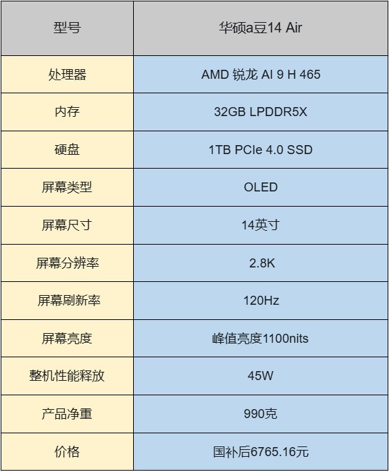高颜实力派!华硕a豆14 Air 2026 990g超轻机身蕴藏45W高能释放