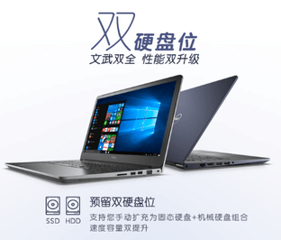 戴尔成就5000轻装造梦笔记本机身预留第二硬盘位,支持您手动扩充为固态硬盘+机械硬盘组合,速度容量双提升。考虑到您对工作效率和存储空间的需求,在笔记本中预留了一个硬盘位,固态硬盘+机械硬盘的组合,既可以保持系统稳定、高速读取文件,也有海量空间供你存储视频、图片等大文件。