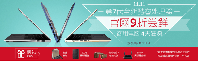 马上入手Vostro 14 5000系列,戴尔官网双·11特惠尝鲜价5999元。只在2016年11月14前购买才可享有,原价6499元直降500元。只有降价还不够,官网再送壕礼四选一,绝对物超所值(壕礼:包鼠套装、木质笔记本电脑底托、500G、D-link无线路由器)。抢购链接:http://configure.ap.dell.com/dellstore/config.aspx?oc=vostro 14-5468-d1745s&model_id=vostro-14-5468-laptop&c=cn&l=zh&s=bsd&cs=cnbsd1