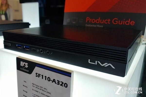 精英展示的这台迷你电脑型号为SF110-A320,体积非常小,只有不到1.2L,三维尺寸只有205mm×176mm×33mm,大约比男性的巴掌大一点。虽然体积小,但性能硬件规格并不差。其采用了锐龙3/5/7 APU,TDP 35W,采用A320芯片组,支持双DDR4-2400 SO-DIMM内存,M.2 2280 PCIe SSD×1,适配器功率90W。