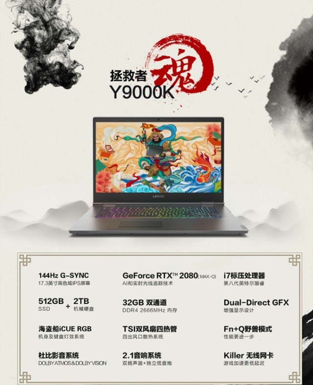 2019年1月的CES上,联想发布了首批搭载英伟达RTX 20系显卡的游戏本新品,其中17.3英寸搭载了英特尔第八代i7处理器的高性能游戏本——拯救者Y9000K“魂”正在京东商城和联想官网火爆预售中。