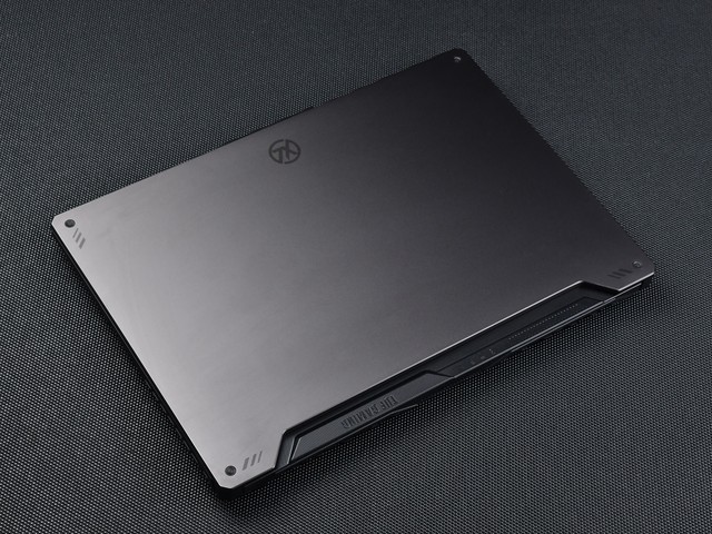 华硕天选2依然保持着让人津津乐道的二次元基因,不过整体设计风格相较前作还是有了些许变化,A面的“TX”logo从正中位置移到了顶端正中位置,并且整体缩小了不少。与此同时,A面的细节设计上也有一些变化,四角的铆钉装饰旁边,都有三道斜线装饰,增加了整个A面的动感。A面面板下方依旧采用了梯形切割设计,避免了A面面板阻挡出风口而影响整体的散热效率。