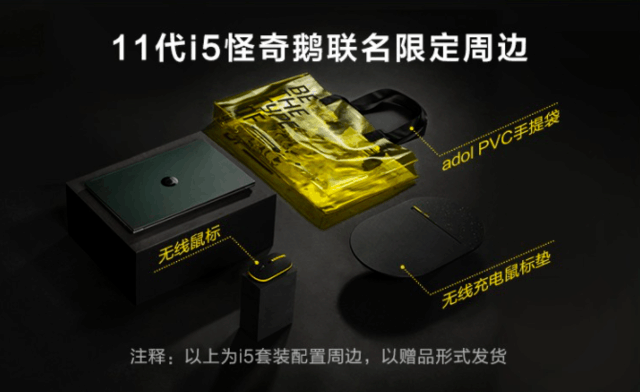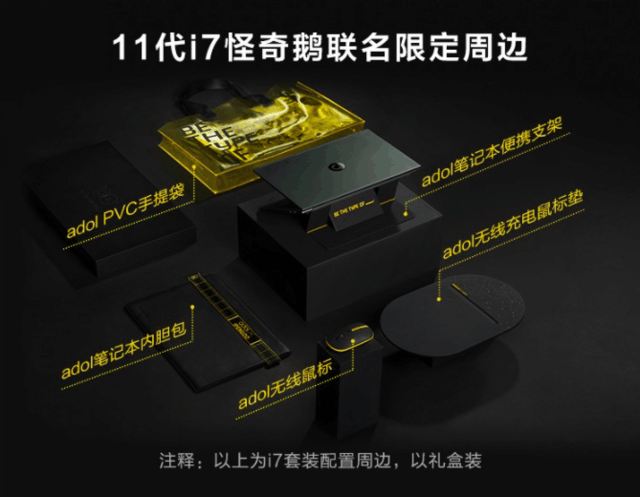 另外,购买这款潮流本的用户还可获得联动礼盒哟!搭载11代i5处理器的套装中包括adolbook14s腾讯怪奇鹅版笔记本、潮色adol无线鼠标、adol无线充电鼠标垫以及adolPVC手提袋。搭载11代i7处理器的套装中则比i5套装多赠送了adol笔记本内胆包以及adol笔记本便携支架两个潮流周边,由内至外给予另一半满满的爱!
