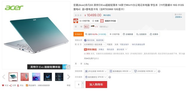 宏碁(Acer)非凡S3 英特尔Evo超能轻薄本 14英寸Win11办公笔记本电脑 学生本(11代酷睿i5 16G 512G 雷电4)蓝+雷电显卡坞(含RTX3060 12G显卡)