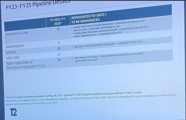 从流出的偷拍图中列出了Take Two旗下数款新游戏的发售计划:
