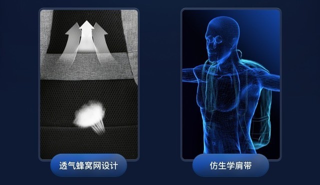 JRC家商务双肩包采用了防泼水面料,下雨天也不怕;弹力橡胶肩带,可减轻背负压力;靠背采用了减压抗震的立体蜂巢设计,舒适透气;背包上还带有外充电接口,可随时随地为手机充电续航,有需要的朋友可以了解一下。