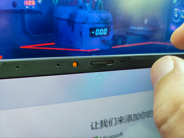 屏幕上方有一颗3DNR降噪摄像头和双向降噪麦克风,并且设计了物理遮挡开关,不用时可以将摄像头关上保障个人隐私。