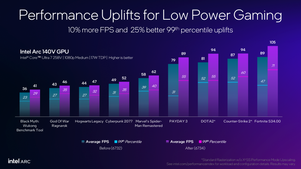 比性能提升更棒的只有免费的性能提升!好消息来了,作为英特尔持续平台优化的一部分,我们即将为搭载英特尔锐炫140V/130V核显的英特尔酷睿Ultra200V系列处理器(代号LunarLake)推送电源管理更新,显著提升游戏性能。