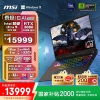 微星(MSI)泰坦16 AI 2025 16英寸游戏本笔记本电脑(酷睿Ultra 9-275HX 满血RTX5080 16G 1TB 2.5K/240Hz屏)